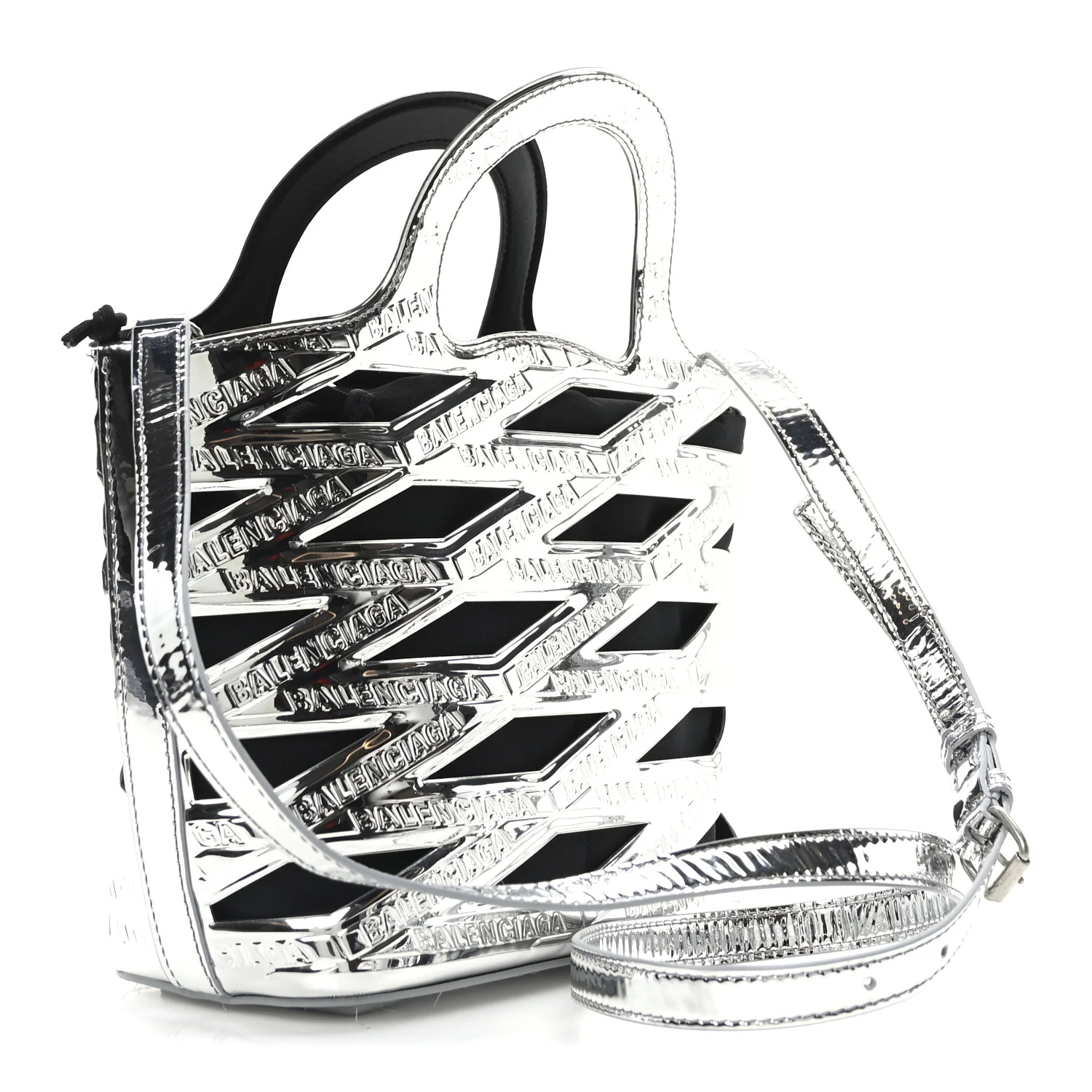 Balenciaga Patent Metallic Calfskin Small Neo Basket Tote Silver