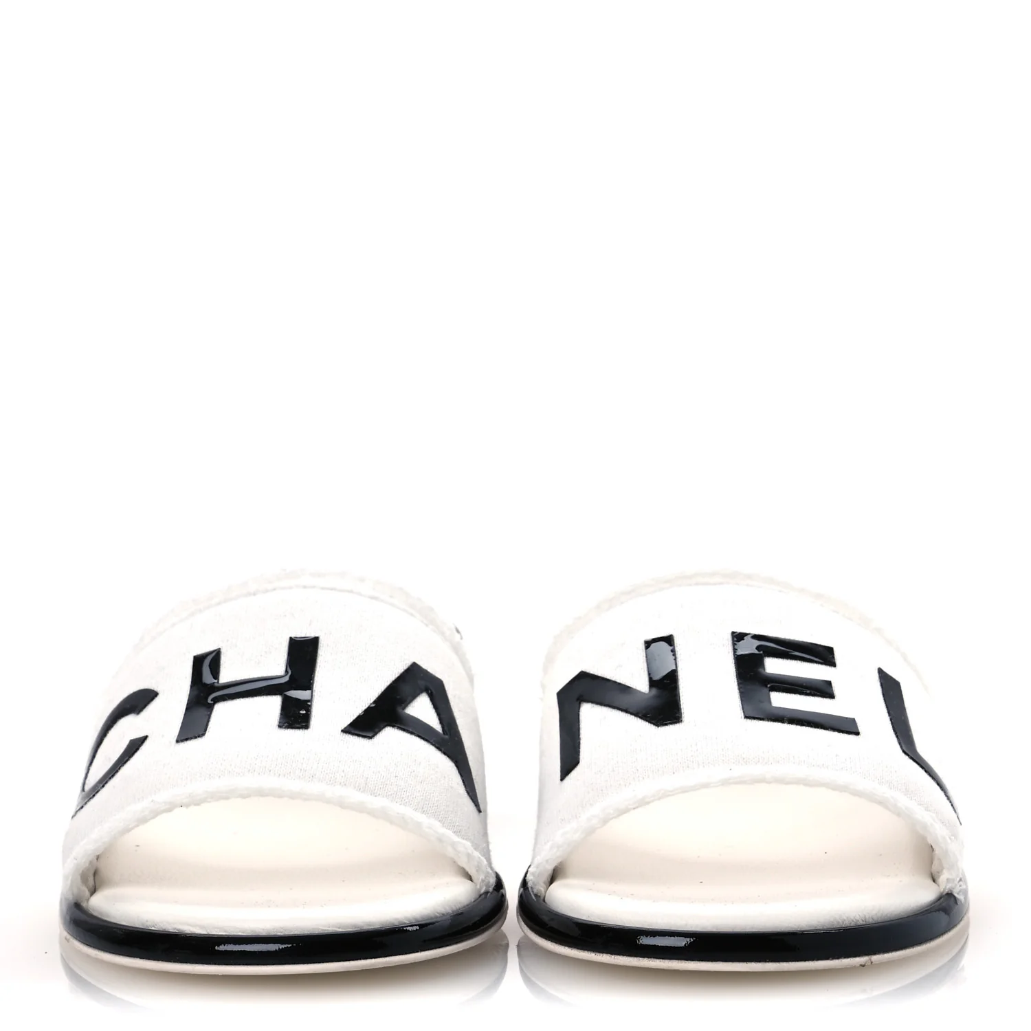 Chanel Cotton Logo Mule Sandals 39 White Black