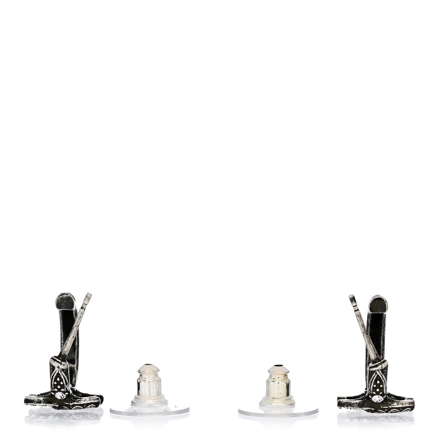 Chanel Metal Crystal CC Hoop Earrings Silver