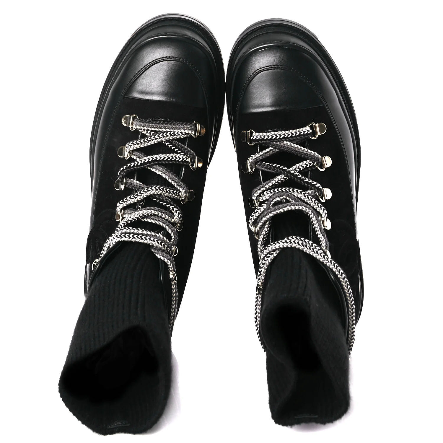 Chanel Suede Knit Womens Sock Lace Up Boots Black