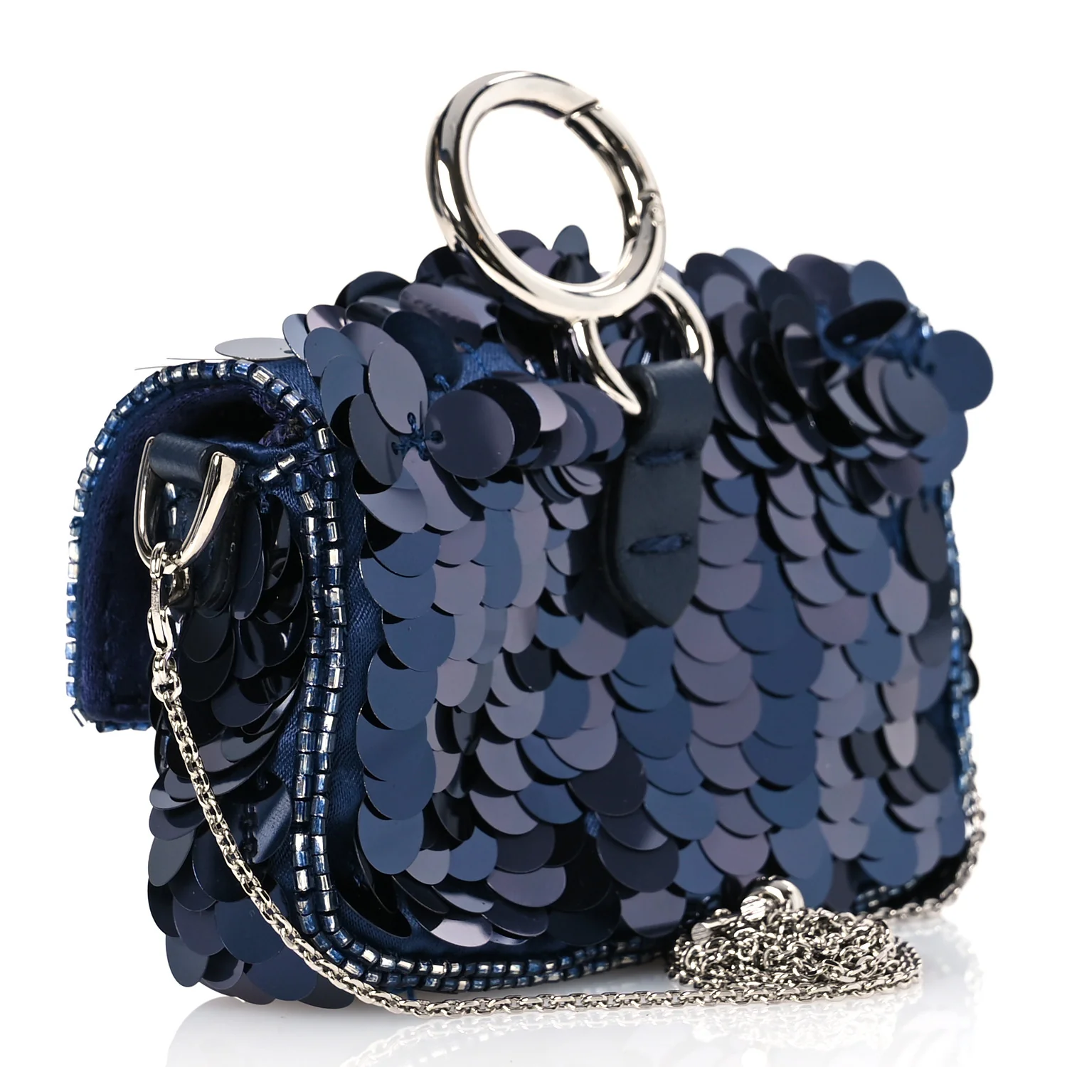 Fendi Sequin Paillettes Shiny Nappa Sex and the City Nano Maxi Buckle Baguette Charm Blue