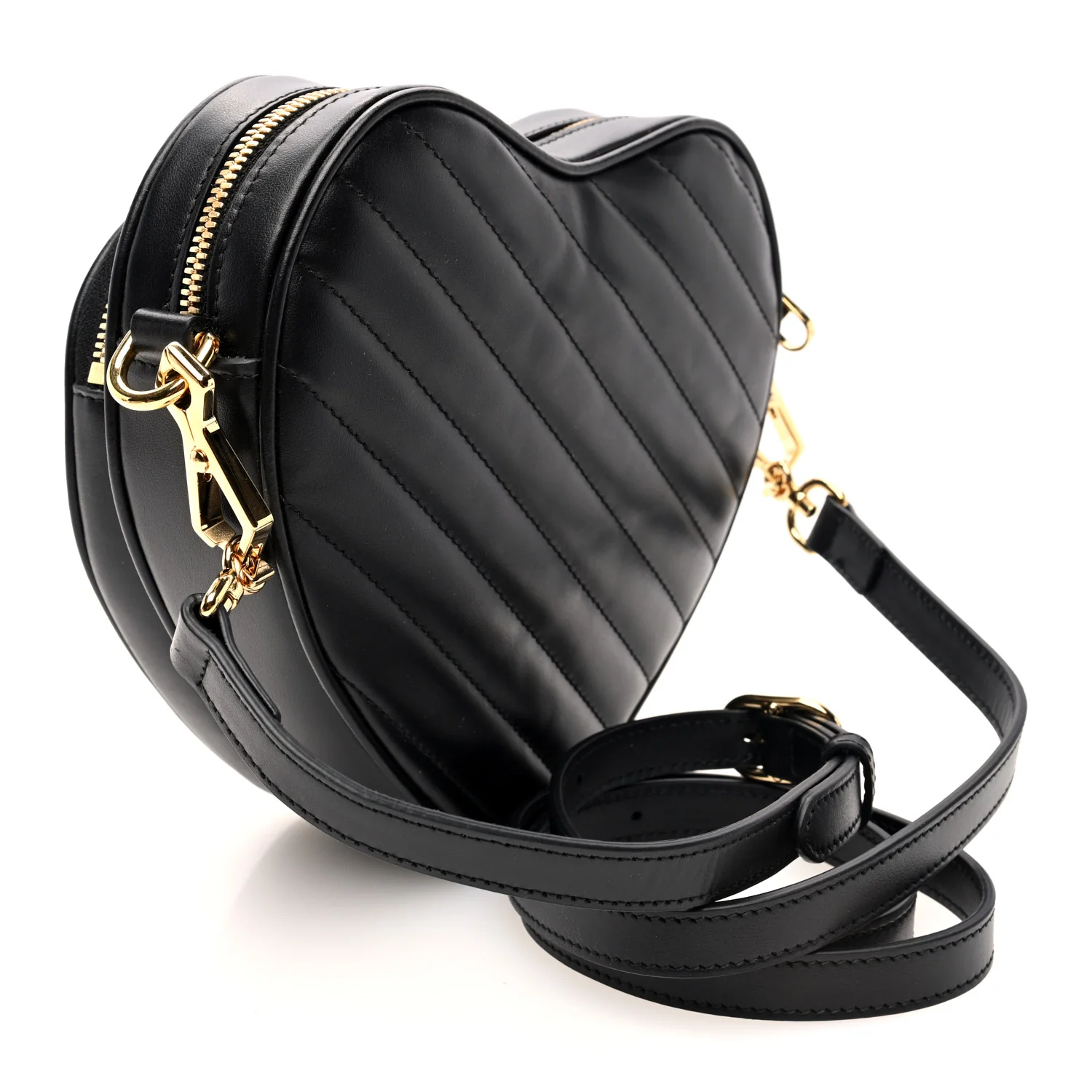 Gucci Calfskin Matelasse Diagonal Mini Interlocking G Heart Shoulder Bag Black