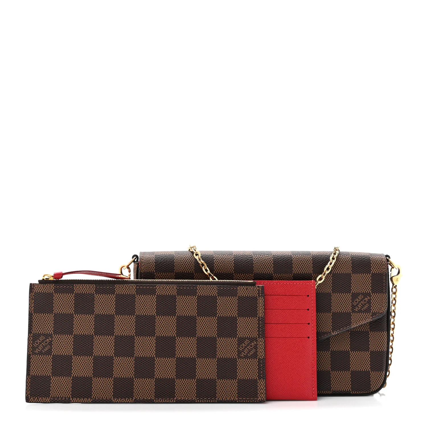 -70%Louis Vuitton Damier Ebene Pochette Felicie Chain Wallet—