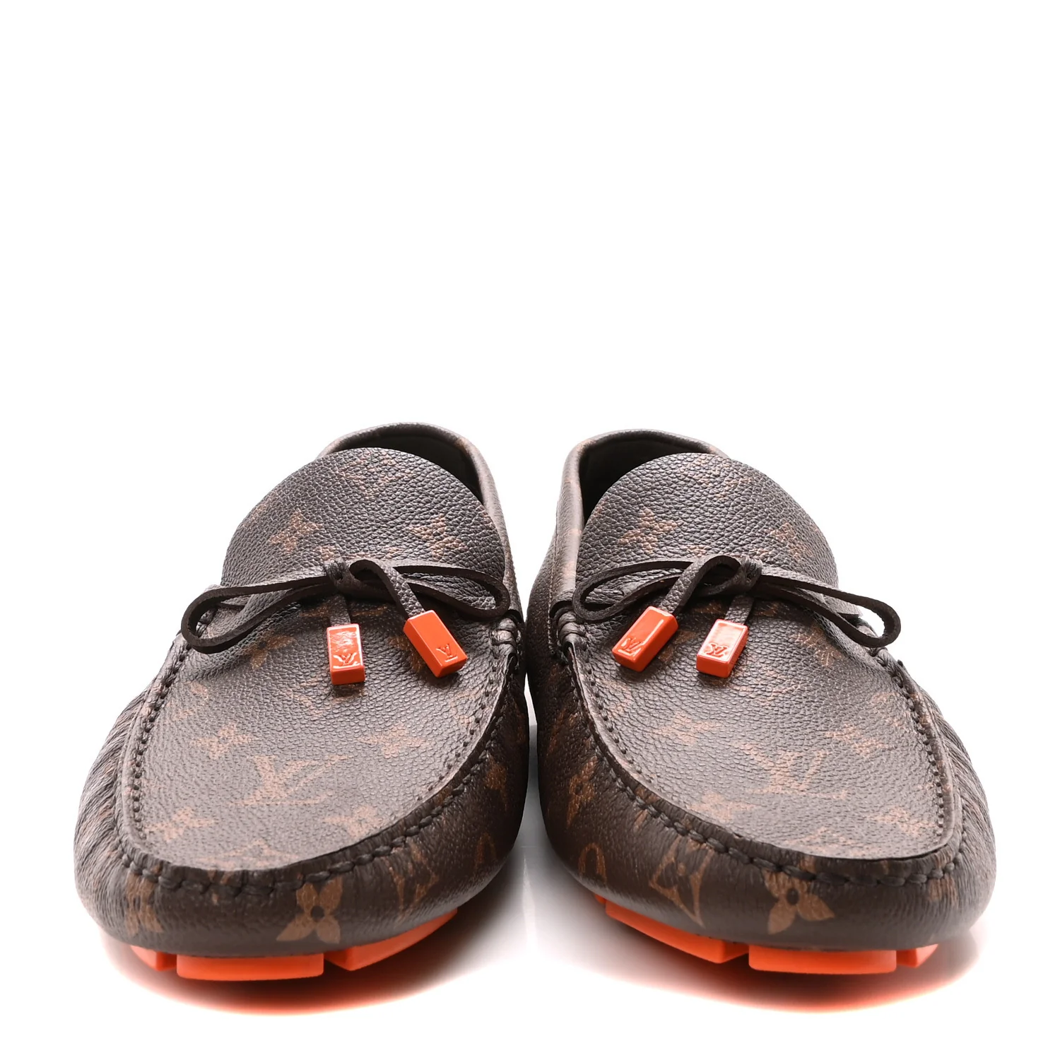 Louis Vuitton Monogram Macassar LV Driver Moccasin Loafers Orange