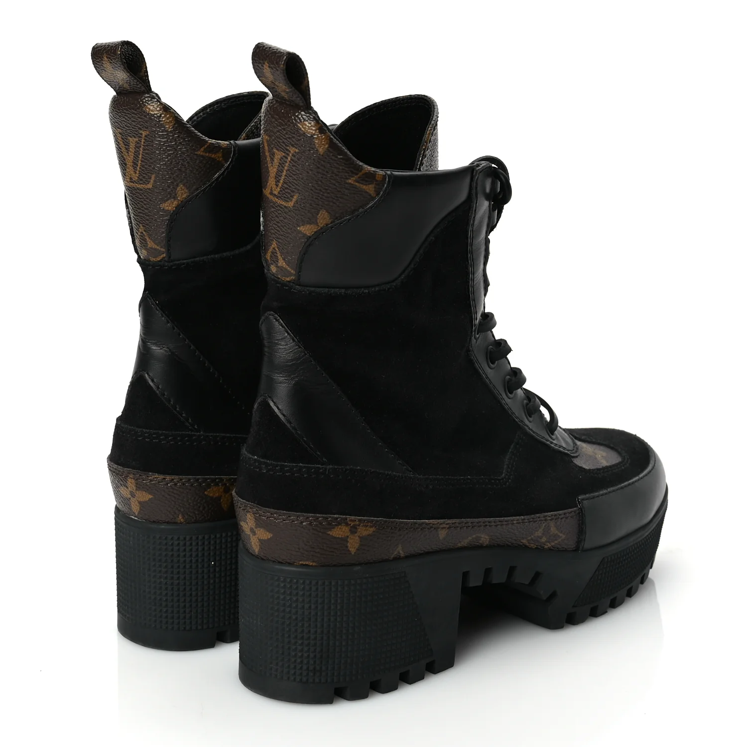 -70%Louis Vuitton Suede Calfskin Monogram Laureate Platform Desert Boots 36.5 Black—