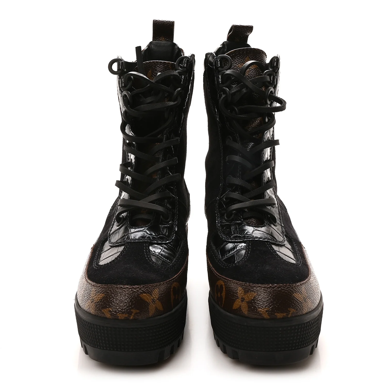 Louis Vuitton Suede Calfskin Monogram Laureate Platform Desert Boots Black