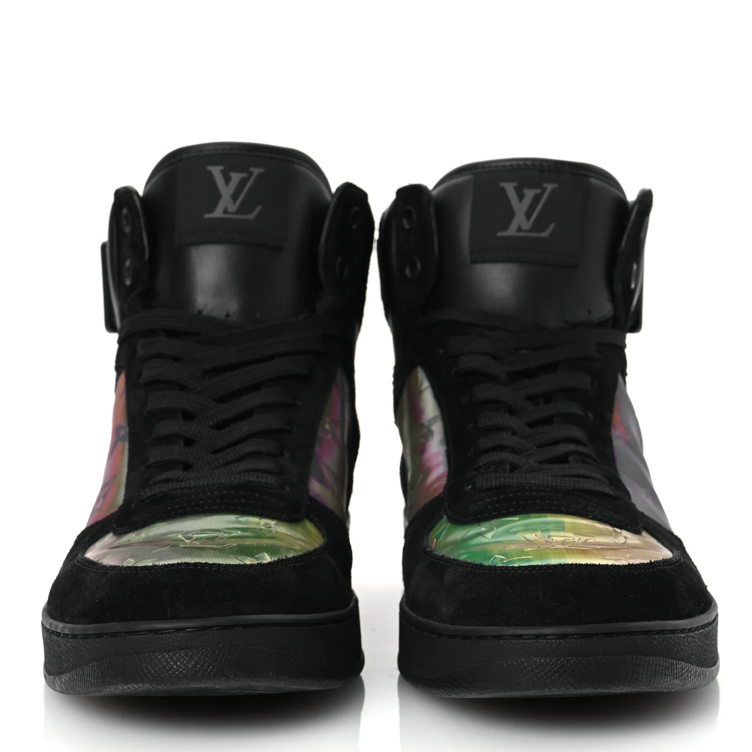 Louis Vuitton Suede Monogram Mens Rivoli High Top Sneakers Black Multicolor—