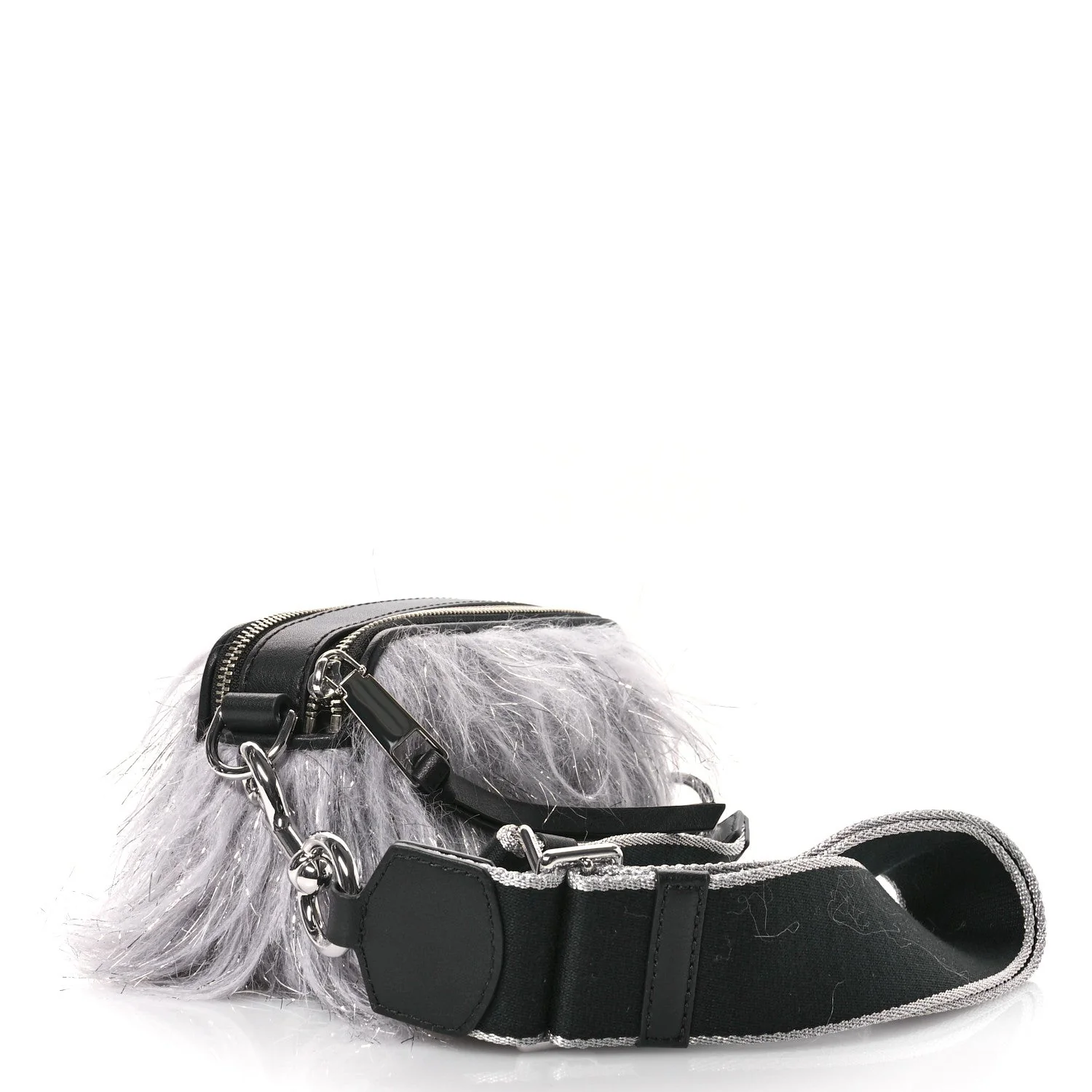 Marc Jacobs Faux Fur Calfskin The Creature Snapshot Camera Bag Grey Silver