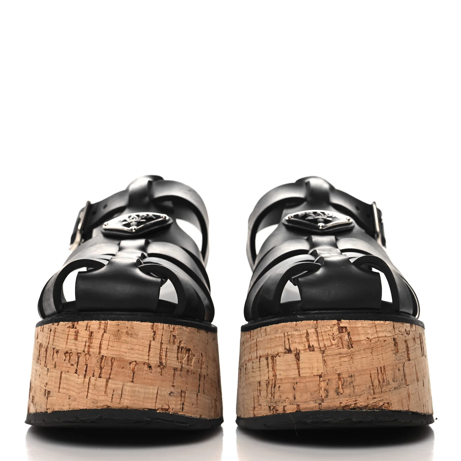 Prada Rubber Soft Cork Triangle Fisherman 75mm Platform Sandals 37 Black—